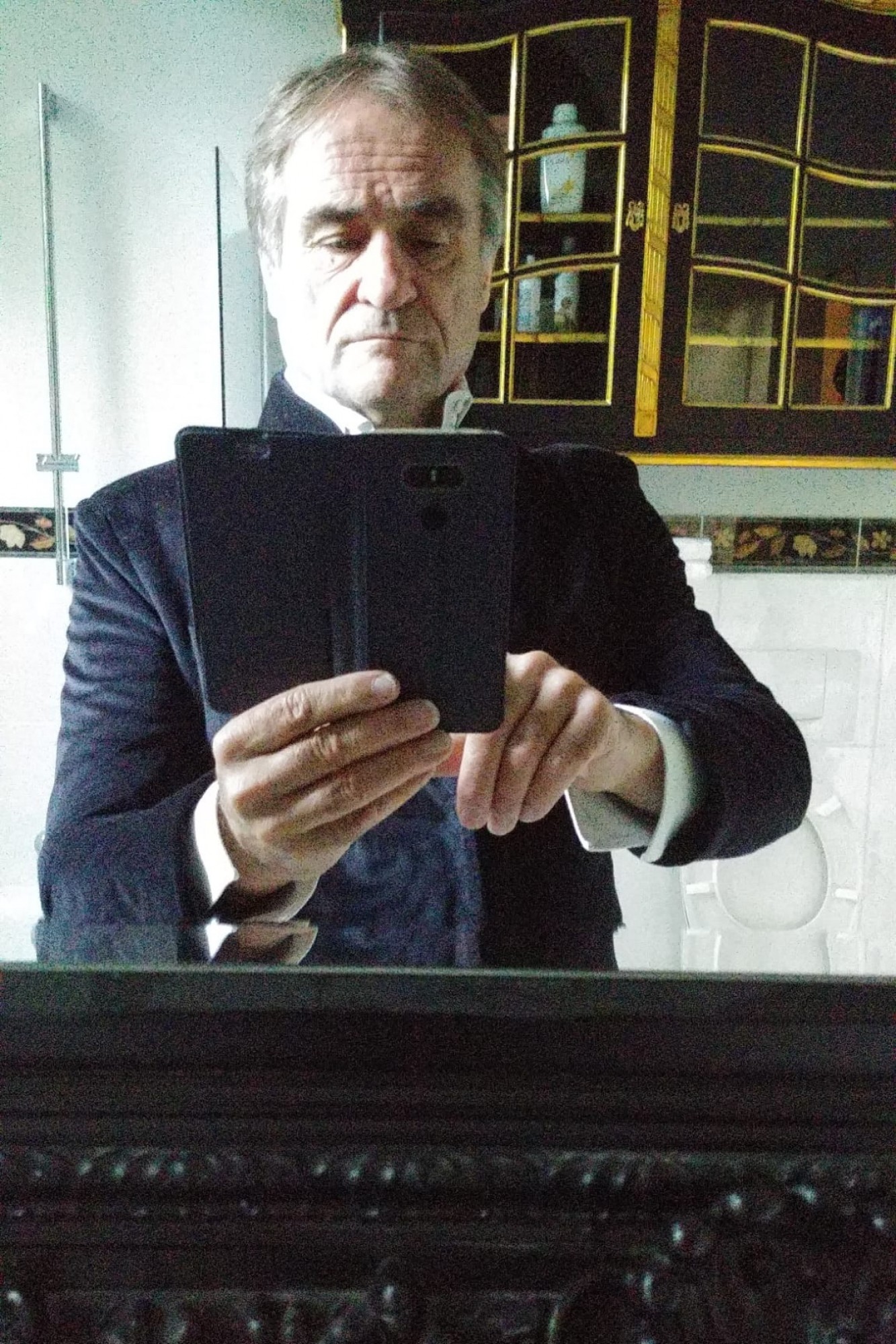 Das Bild will darauf aufmerksam machen, dass unzählige Menschen auf der ganzen Welt sich in der heutigen Zeit morgens gleich doppelt - mit Badezimmer-Spiegel und Handy-Spiegel - umgeben. Gleichzeitig befindet sich der Planet Erde in einem übermäßigen Wärmezustand, den wir selbst verursacht haben.